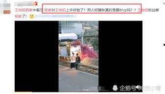 最近娱乐圈可是炸开了锅,王俊凯和杨紫这对“童颜组合”竟然合体了!而且,更让人惊喜的是,他们竟然公开了一段视频,里面可是有不少爆料哦!快来跟我一起看看这段视频都有哪些精彩内容吧!